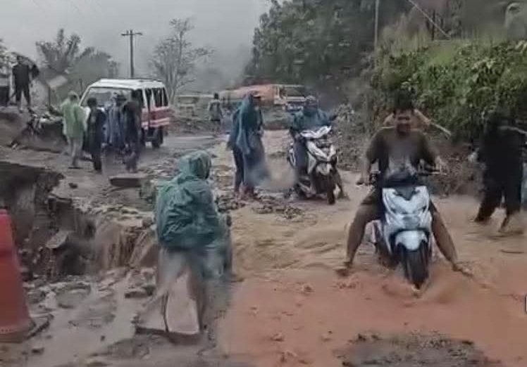 Hujan Turun , Jalan Jembatan Merah – Muarasoma di Mandailing Natal Pasti Amblas, Ini Komentar Supir.