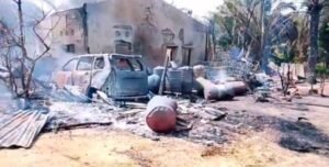 Akan tetapi , karena musim kemarau tidak ada air, sehingga warga masyarakat sebagian membantu mengambil dari sumur milik tetangga yang jaraknya sekitar 50 meter dan air sumur pun hanya sedikit , akan tetapi karena api terus membesar disebabkan Barang barang yang terbakar dari dalam rumah tersebut sebagian adalah Minyak Solar dan Minyak Pertalite dan terdapat beberapa Tabung Gas LPG si 3 KG , 5 KG dan 12 KG sehingga Api sulit dikendalikan pada saat itu,