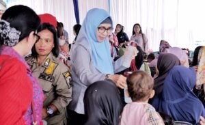 Sebelum acara peluncuran dimulai, Bupati Anton Achmad Saragih bersama Ketua TP PKK Kabupaten Simalungun, Ny. Hj. Darmawati Anton Achmad Saragih, telah membagikan tubler kepada balita dan ibu hamil.