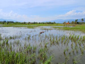 Berdasarkan data yang dihimpun tim di lapangan, luapan air akibat jebolnya tanggul tersebut telah merendam dan merusak sedikitnya 830 hektar lahan pertanian warga.