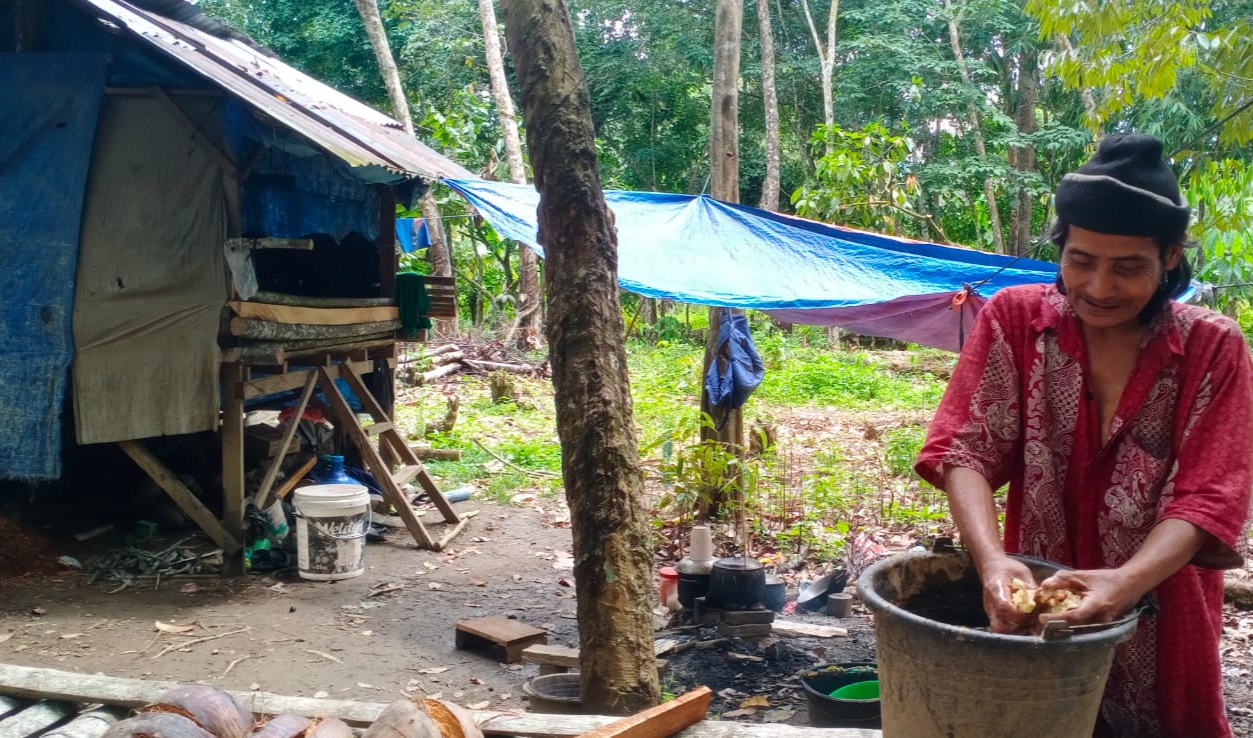Usianya 57 tahun. Kurus dan sesak nafas. Disekitarnya tumbuh beberapa batang pohon karet yang menjadi sumber kehidupan satu-satunya.