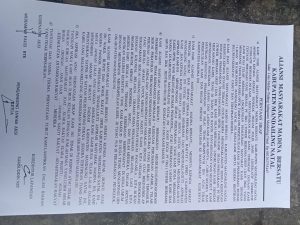 Kata Erwin, Mewakili seluruh anggota DPRD Madina, saya menerima seluruh aspirasi AMMB yang telah dituangkan dalam surat pernyataan ini.