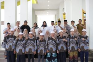PANYABUNGAN(Malintangpos Online): Wakil Bupati Mandailing Natal, Atika Azmi Utammi Nasution melepas keberangkatan peserta Musabaqah Tilawatil Quran dan Hadis (MTQH) tingkat Provinsi Sumatera Utara di Masjid Agung Nur Ala Nur, Kecamatan Panyabungan, Jumat (19/5/2023).