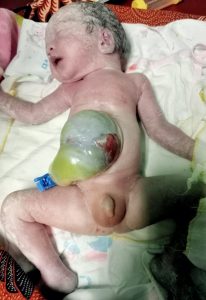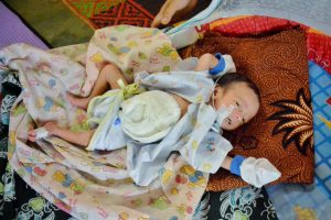Dibalik kebahagiaan yang menyelimuti keluarga Sugeng itu, ia dan istri harus menerima kenyataan bahwa anak laki-lakinya yang lahir dengan berat badan 1,8 Kg mengalami penyakit dengan bahasa medis Omfalokel (usus keluar dari perut).