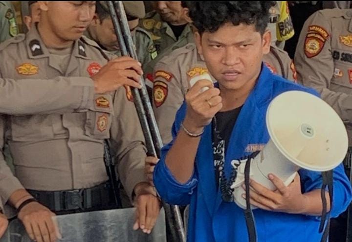 Salah satu Mahasiswa Padang Lawas, Amri Hasibuan saat melaksanakan Demo/Dokumen