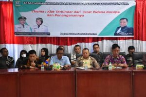 PANYABUNGAN(Malintangpos Online): Bupati Mandailing Natal H. Muhammad Ja’far Sukhairi Nasution dan Wakil Bupati, Atika Azmi Utammi Nasution, mengikuti diskusi anti korupsi bersama kuasa hukum Pemda Madina, Dr. Adi Mansar SH MHum, Kamis (14/7/2022) di Aula Setdakab.