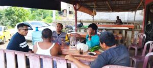 Bahabinkamtibmas Polsek Dalan Lidang Kec.Linggabayu Kab.Madina, Brigadir Yusron Pandiangan melaksanakan sambang sekaligus silaturrahmi dengan masyarakat binaannya di Desa Sikumbu Kecamatan Linggabayu tepatnya di lopo Kopi Udo.