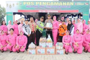 Masih ketua Bhayangkari “Pemberian bingkisan kepada anggota yang sedang melaksanakan tugas di Pospam Operasi Ketupat Toba 2023 sebagai wujud peduli kami kepada anggota yang sedang melaksanakan pengamanan. Semoga bingkisan yang kami berikan dapat bermanfaat bagi anggota di pos pengamanan dan pelayanan Ketupat Krakatau 2023,” Sambung Ny. Rina Reza