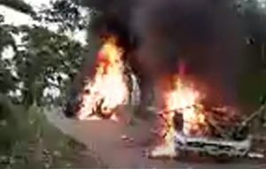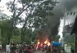 MASYARAKAT Desa Mompang Julu Kecamatan Panyabungan Utara, Kabupaten Mandailing Natal, yang melakukan aksi blokir jalan sejak Senin pagi (29/6) pagi hingga pukul 20.30 Wib telah mengakibatkan dua Unit Mobil, Septor dibakar massa dan hubungan Lalulintas masih macet total.