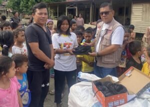 PANYABUNGAN(Malintangpos Online):Badan Penanggulangan Bencana Daerah (BPBD) Kabupaten Mandailing Natal (Madina) menyerahkan bantuan berupa sepatu kepada anak anak korban bencana banjir di Desa Muara Batang Angkola Kecamatan Siabu, Sabtu (27/12/25).