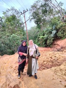 ” Ngak usah masuk Bapak/Ibu Guru, yakinlah nggak bisa lewat, karena ada lagi didalam yang longsor,” Ujar Warga mengaku marga Nasution, kepada sejumlah Guru SD Negeri yg hendak melewati jalan yang longsor,Jumat Pagi(17/11).