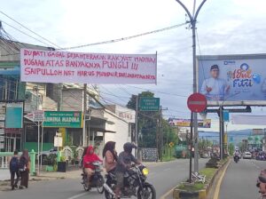 Dalam spanduk ditulus dikain putih berisi ” Bupati gagal sejahterakan masyarakat Madina, dugaan banyaknya pungli, Saipullan Nasution harus mundur dari jabatannya” namun tidak ada yang bertanggung jawab dalam tulisan spanduk. Alias tak bertuan.