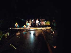 TAMBANGAN(Malintangpos Online): Breaking News, akibat hujan deras diwilayah Mandailing Natal, Sabtu Malam(18/10) 1 Tiang Listrik dan sejumlah Pohon Karet, Tumbang Menimpa Badan Jalan Nasional di sekitar Desa Laru Kecamatan Tambangan – Maga Kec.Lembah Sorik Marapi, mengakibatkan hubungan Lalulintas kedua wilayah terganggu sejak pukul 21.00.Wib.