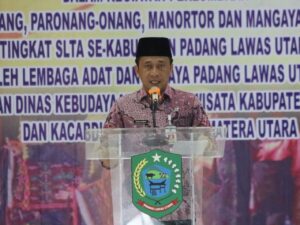Andar Amin Harahap, S.STP, M.Si yang diwakili Sekretaris Daerah Patuan Rahmat Syukur P. Hasibuan, S.STP, MM dalam sambutannya, Pemerintan Daerah menyambut gembira atas pelaksanaan perlombaan grup gondang, paronang-onang, manortor, dan mangayapi tingkat SLTA se Kabupaten Padang Lawas Utara ini, dimana kegiatan tersebut bukan sekedar menentukan yang terbaik saja, melainkan sebagai perwujudan visi misi Kabupaten Padang Lawas Utara yang beriman, cerdas, maju, dan beradat.