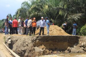 PASAMAN BARAT(Malintangpos Online): Bupati Pasaman Barat, Hamsuardi dan Wakil Bupati, Risnawanto didampingi Staf Ahli Bupati, Perwakilan BPBD, Dinas PUPR, Camat Kinali dan stakeholder terkait meninjau dua titik lokasi yang terdampak bencana banjir di Nagari Koto Gadang Jaya (Koja) Kecamatan Kinali, Senin (11/3).
