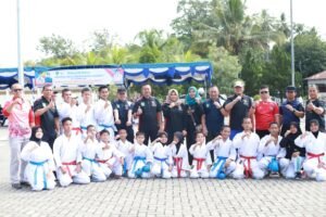 Hadir pada upacara ini, Wabup Atika Azmi Utammi, staf ahli, kepala OPD ketua KONI, serta diikuti para ASN dan juga pelajar tingakat SD dan SMP( Komimfo/ Dita)