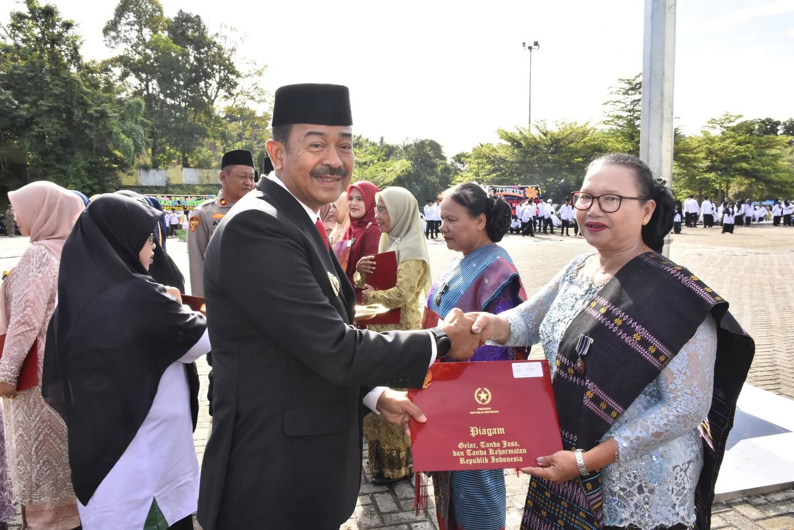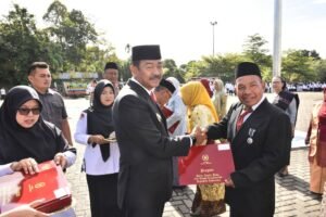 Upacara ini dihadiri oleh Unsur Forkopimda, Pj Sekda Madina Sahnan Pasaribu, para Asisten, Staf Ahli, Kepala OPD, Kepala Kantor Urusan Agama (KUA) se-Madina serta para guru dibawah naungan Kemenag Madina.