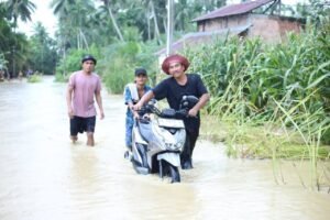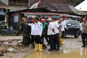 MUARA BATANG ANGKOLA(Malintangpos Online):Bupati Mandailing Natal (Madina) H. Saipullah Nasution bersama rombongan meninjau kondisi masyarakat yang terdampak bencana banjir di Desa Muara Batang Angkola, Kecamatan Siabu, Rabu sore, 26 November 2025.