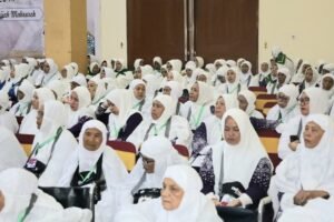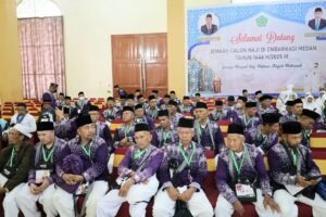 MEDAN(Medan): “Alhamdulillah ” Jemaah Calon Haji (Calhaji) asal Mandailing Natal, yang tergabung dalam Kelompok Terbang 10 (Kloter 10) tiba di Asrama Haji Embarkasi Medan, Minggu, 11 Mei 2025, sekitar pukul 16.00 WIB.