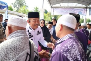 PANYABUNGAN( Malintangpos Online): Bupati Mandailing Natal ,H. Saipullah Nasution,SH.MN, menyambut kepulangan jemaah haji Kelompok Terbang 5 (Kloter 5) di Masjid Agung Nur Ala Nur Aek Godang, Kecamatan Panyabungan,Rabu, 18 Juni 2025.