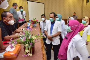 PANYABUNGAN(Malintangpos Online): Gubernur Sumatera Utara (Sumut) Edy Rahmayadi mengumpulkan seluruh dokter yang bertugas di rumah sakit umum daerah (RSUD) Panyabungan Mandailing Natal (Madina) di Aula Hotel Rindang, Jalan Trans Sumatera Panyabungan Kabupaten Madina, Kamis (8/10). Masalah banyaknya dokter yang terpapar Covid-19 adalah salah satu yang dibahas.