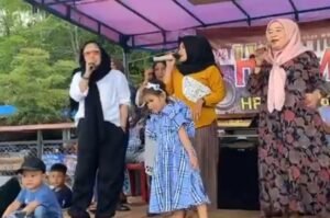 Kedekatan dan keakraban warga pun terlihat saat salah satu warga meminta Ika Desika untuk naik ke panggung musik yang disediakan pengelola fasilitas Water Park selama lebaran ini di objek wisata Sampuraga.