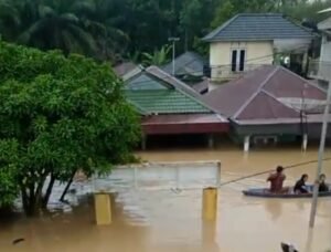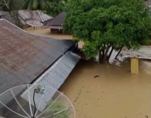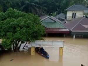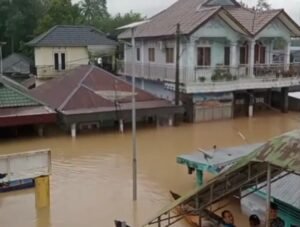 MUARA BATANG ANGKOLA(Malintangpos Online): Sejak Pukuk 07.00 Wib,Kamis(27/11) Desa Muara Batang Angkola Kecamatan Siabu Kabupaten Mandailing Natal,Nyaris ” Tenggelam ” sebab air sudah berada sekitar 2,5 Meter.