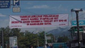 Demikian informasi tersebut diterima Wartawan dari Group WhatsApp dan langsung dilokasi ketika mengambil Foto Spanduk,Senin(22/12) di Kota Panyabungan Ibukota Kabupaten Madina.
