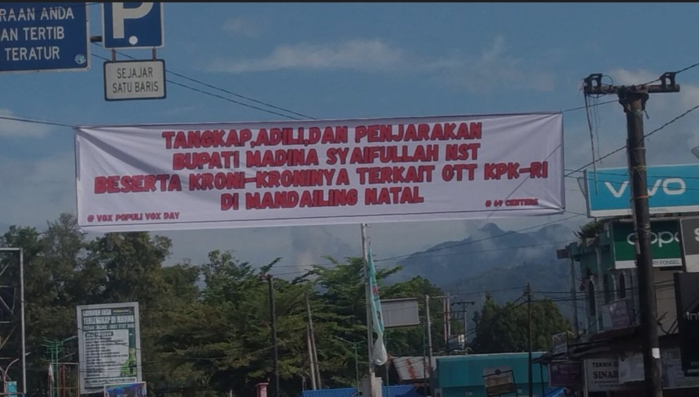Dalam baliho tersebut tertulis ” Tangkap, Adili dan Penjarakan Bupati Madina Syaipullah Nst Beserta Kroni Kroninya Terkait OTT KPK – RI di Mandailing Natal ” dengan dasar Spanduk Putih dan Tulisan Merah.