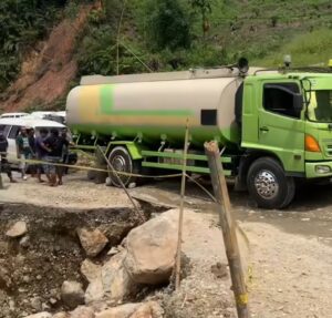 Sedangkan, hingga pukul 13.00 Wib, Sabtu(18/04) Mobil belum bisa lewat, sebab sejumlah titik jalan sekitar Soptinjak – Bulusoma nyaris Amblas karena air sudah mengalir ke Badan Jalan