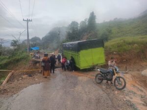 SOPOTINJAK(Malintangpos Online): ” Mungkin Ada Korban Jiwa dulu, Baru diperbaiki,” Ucapan itulah yang disampaikan oleh Supir Truk Fuzo M.Idris Pulungan, saat melintas di Jalan Jembatan Merah Kec.Panyabungan Selatan – Muasoma Kec.Batang Natal Mandailing Natal, terkait dengan banyak ruas jalan daerah itu yang Amblas dan tak kunjung diperbaiki oleh Gubernur Sumut, C/Q. Bina Marga Provinsi Sumut.