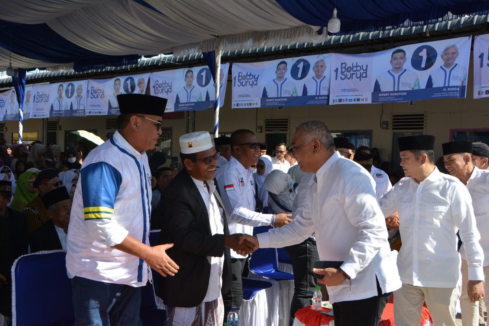 Acara Pesta Rakyat Bobby-Surya yang berlangsung ramai itu bertambah meriah dengan kedatangan Harun Mustafa beserta tim pemenangan ke lokasi acara.