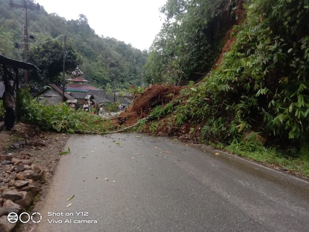 ” Longsoran yg menimpa sebagian badan jalan,ketika hujan , air mengalir di sepanjang jalan ,bahkan sampai ke halaman rumah warga,” kata Hotnan Nasution.