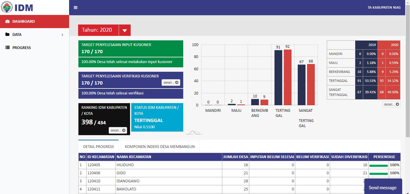 IDM 2020 SEBANYAK 67 DESA DI KABUPATEN NIAS BERSTATUS SANGAT TERTINGGAL