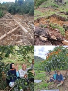 Kebun alpukat yang diselingi tanaman kopi di Tetak, Dedamar, Bintang, luluhlantak diterjang banjir bandang. Di atas tanah ini sudah tumbuh 420 batang alpukat, berumur 5 tahun lebih. Sudah mulai belajar berbuah.