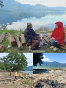 Sampai kini, gubuk papan tempat istirahat kami di pinggir danau ini masih terendam lumpur, belum mampu kami urus.