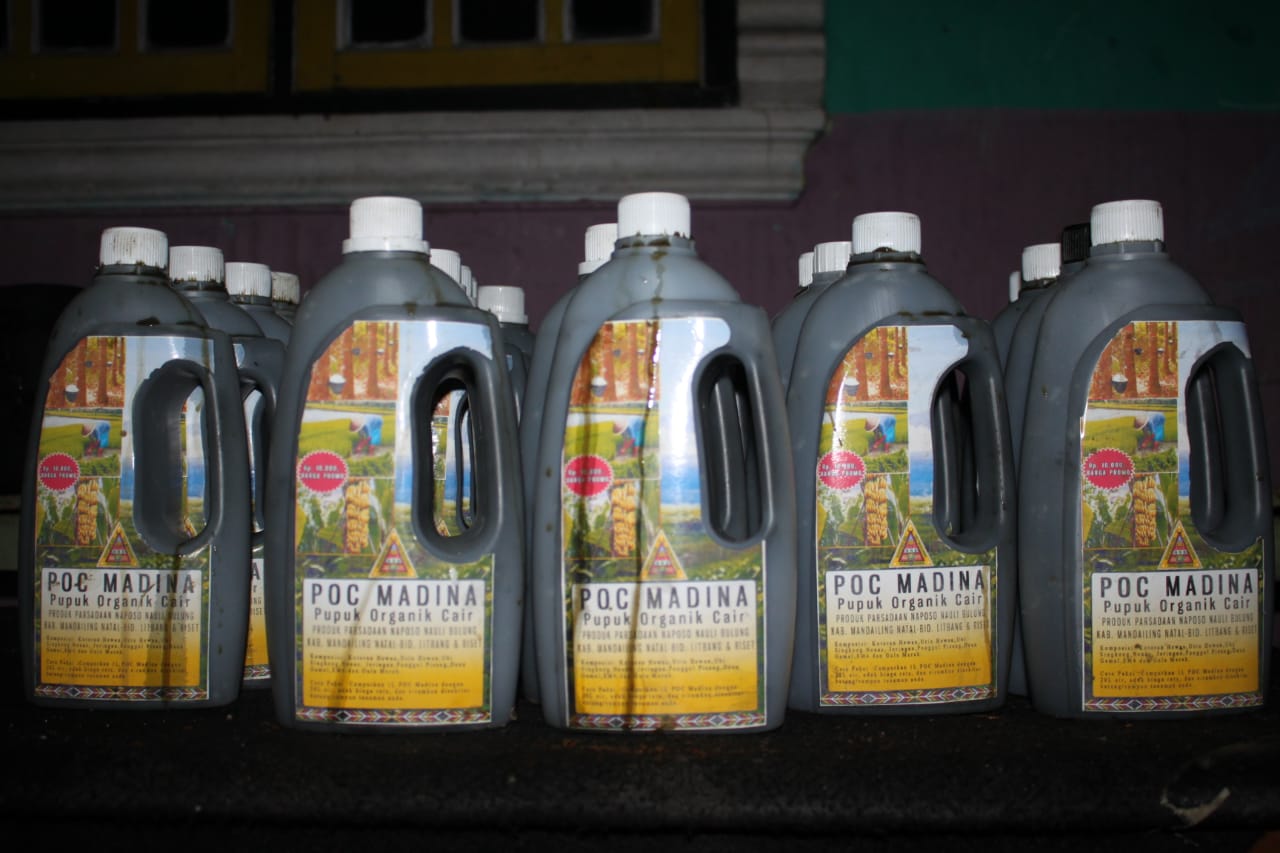 “Pupuk organik cair ini bisa di aplikasikan terhadap tanaman karet, pisang, padi, bunga, sawit, jahe, jagung, dan lain-lain dengan cara mencampurkan 1 liter pupuk POC Madina ini dengan 20 liter air yang kemudian disiramkan di sekitar batang tanaman,” tandasnya.