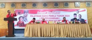 ” Saksi PDI Perjuangan Benteng terahir untuk kemangan Anggota DPRD dan Ganjar – Mahfud MD pada Pemilu 14 Februari 2024 mendatang ini,” ujarnya ( Aris/Nanda)