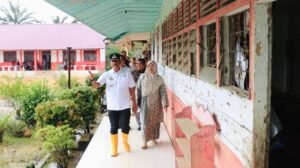 Bupati Mandailing Natal (Madina), H. Saipullah Nasution, bersama rombongan meninjau kondisi warga terdampak banjir di Desa Batahan III, Kecamatan Batahan, Kamis (8/1/2026).