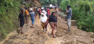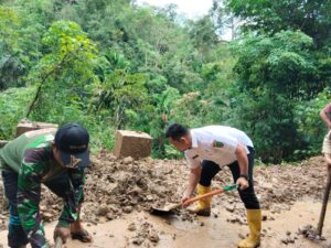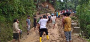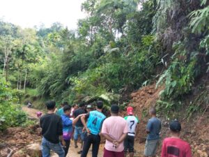 Pantauan Wartawan, Rabu sore(15/04) jalan yang tertimpa longsor sudah di Gotong Royongkan warga dan sejumlah titik karena ada batu besar belum bisa dilewati(Isk/Dita)