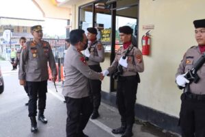 “hari ini kita mengecek langsung kesiapan Polres Mandailing Natal dalam menghadapi arus mudik lebaran tahun 2023, dimana lokasi yang dipantau ialah perbatasan provinsi sumut tepatnya di kabupaten mandailing Natal” Sebut Kapolda Sumut.