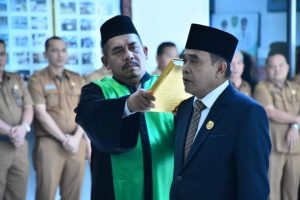Bupati Madina HM Jafar Sukhairi Nasution melantik Alamulhaq Daulay, SH menjadi Penjabat (Pj) Sekretaris Daerah (Sekda) Madina di aula Sekda, Senin (24/10).