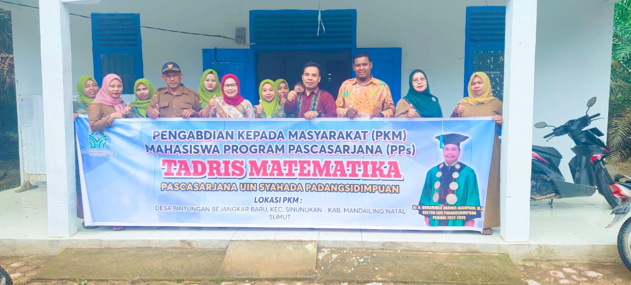 Kata Alwi, Mahasiswa Program Magister Pascasarjan (S2) Tadris Matematika telah melaksanakan kegiatan Pengabdian Kepada Masyarakat (PKM) yang beralamatkan di desa Bintungan Bejangkar Baru, Kecamatan Sinunukan, Mandailing Natal dan di SD N 01 Bintungan Bejangakar Baru.