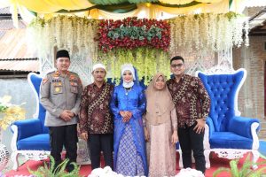 ”Semoga Allah SWT memberi berkah untukmu. Semoga Allah menurunkan kebahagiaan atasmu. Semoga Allah SWT menyatukan kamu berdua dalam kebaikan dan ‘afiyah, Sakinah Mawaddah Warohmah,”do’a AKBP Reza.
