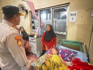 Momen akrab Kapolres dengan korban terlihat saat membesuk Ismi yang sedang berbaring dirawat di RSUD Panyabungan, Senin (6/2/2024) malam.