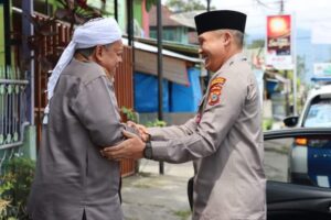Kapolres bersama pejabat utama dan beberapa personel Polres Madina berkunjung ke kediaman salah seorang tokoh agama di Kabupaten Madina bertempat di Kelurahan Pasar Hilir, Kecamatan Panyabungan bernama KH Abdul Baits Nasution atau Tuan Bais.