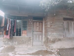 Rumah semi permanen warisan orangtua berdinding papan beratap seng tempat mereka tinggal.