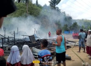” Asal api diduga arus pendek, Damkar turun 1 Uni, sekitar 1 jam api berhasil dipadamkan,” ujar Camat