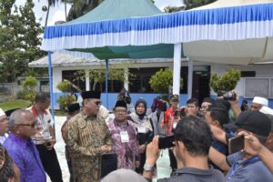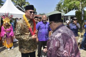 Setelah itu, Sukhairi dan Saud Usman bersama rombongan kemudian bertolak ke lokasi yang disambut Camat, unsur Forkopimcam serta tokoh masyarakat dengan prosesi pengalungan bunga, dan gordang sambilan dan tari tor-tor sekitar pukul 10:30 WIb.