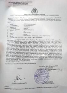 Permintaan tersebut merujuk pada Laporan Polisi Nomor: STPL/B/322/VIII/2025/SPKT/Polres Madina/Polda Sumut, tertanggal 28 Agustus 2025. Laporan ini terkait dugaan tindak pidana pelanggaran Undang-Undang Nomor 40 Tahun 1999 tentang Pers, khususnya Pasal 18.